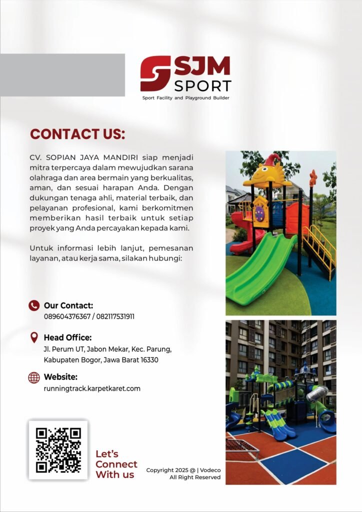 Salah satu alasan mengapa banyak klien memilih CV Sopian Jaya Mandiri sebagai kontraktor rubber flooring adalah fokus kami pada kualitas dan kepuasan pelanggan. Kami menggunakan bahan terbaik dalam setiap proyek dan memastikan bahwa pemasangan dilakukan oleh tim ahli yang berpengalaman. Dengan pendekatan yang profesional, kami berkomitmen untuk menyelesaikan setiap proyek tepat waktu dan sesuai anggaran.